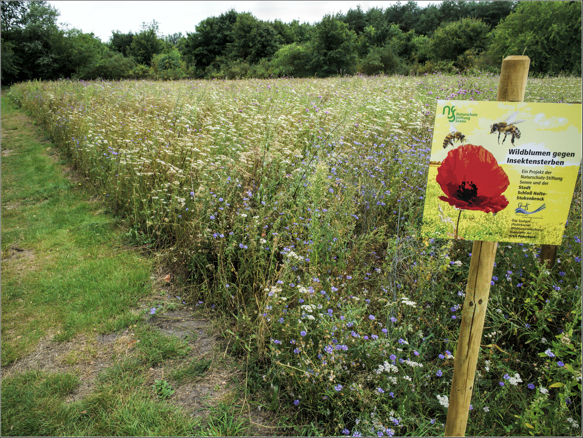 Im Jahr 2018 startete die Naturschutz-Stiftung Senne das Projekt „Wildblumen gegen Insektensterben“. Durch die Anlage von Wildblumenwiesen („Blühflächen“) mit regionalem Saatgut in innerörtlichen Bereichen sollten die Lebensbedingungen für heimische Insekten (z.B. Schmetterlinge, Wildbienen, Schwebfliegen) verbessert werden. Gleichzeitig sollten Bürger zur Nachahmung auf Privatflächen angeregt werden.